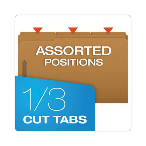 Pendaflex Kraft Folders with Two Fasteners, 1/3-Cut Tabs, Legal Size, Kraft, 50/Box