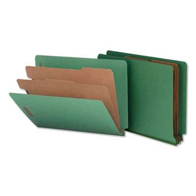 Universal Deluxe Six-Section Colored Pressboard End Tab Classification Folders, 2 Dividers, Letter Size, Green, 10/Box