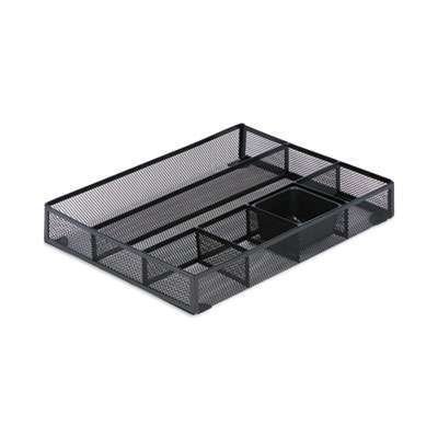Universal Metal Mesh Drawer Organizer, Six Compartments, 15 x 11.88 x 2.5, Black